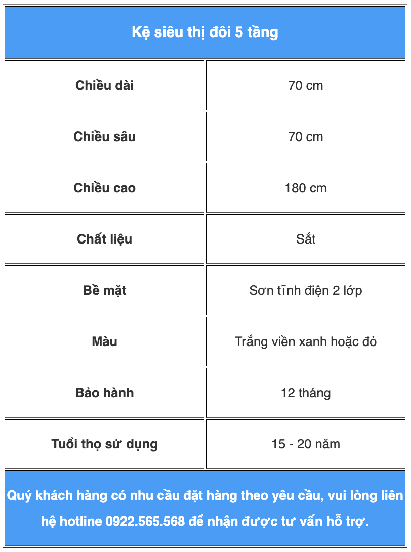 Quý khách có nhu cầu Báo giá Kệ sắt siêu thị đôi 5 tầng theo yêu cầu, vui lòng liên hệ trực tiếp với Giá kệ HLT theo các thông tin dưới đây để nhận được tư vấn hỗ trợ nhanh nhất.